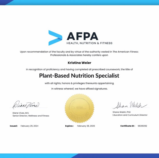 I am a certified Plant Based Nutrition Specialist experienced in leveraging plant based nutrition to optimize your health by improving gut health, increasing energy levels, supporting cardiovascular health and more. There is a lot of information to be had about plant based foods, I am here to help you on your journey to augment your diet to keep you feeling your best!